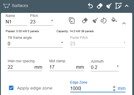 The Edge Offset feature allows you to define buffer zones along the edges of a roof or surface. This ensures that panels are not placed too close to the boundaries, maintaining safe installation margins and aesthetic alignment.