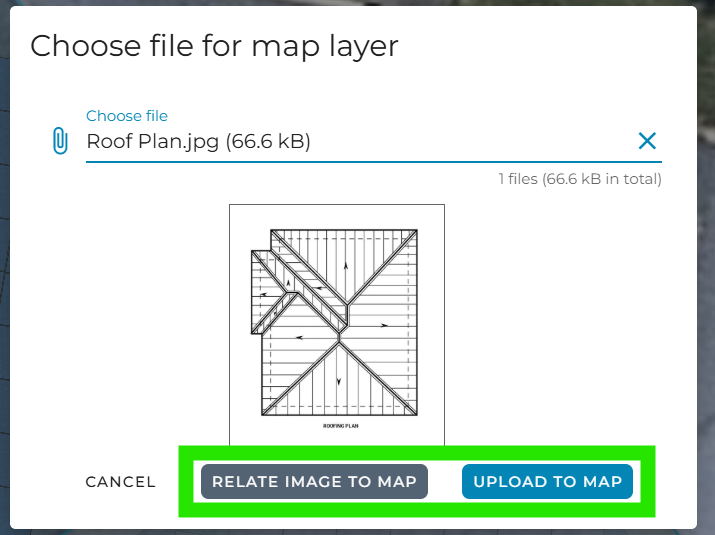 - Select a single point on the uploaded file (map/plan/site layout) and the corresponding point on the map.