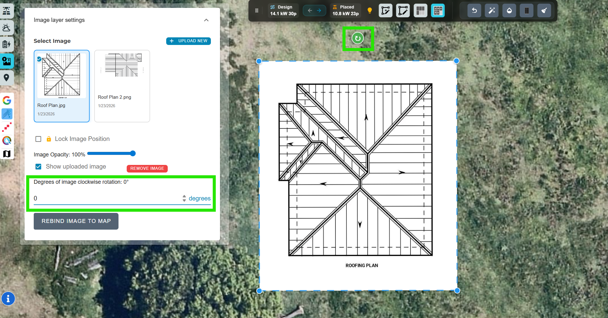 - You can then rotate the image, or re-bind it to the map to set it in another position or scale.