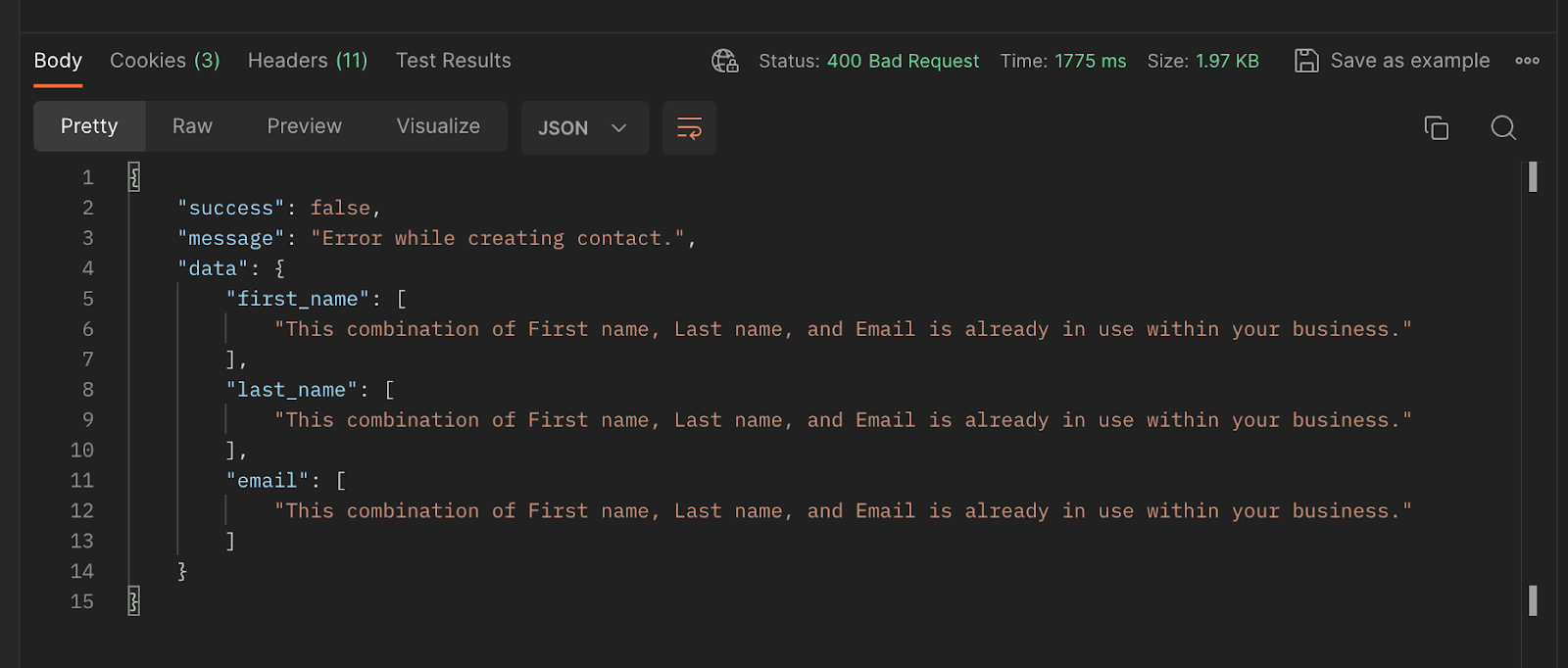Note: if the contact has an error, you will get 400 Bad Request error and will tell you the details also