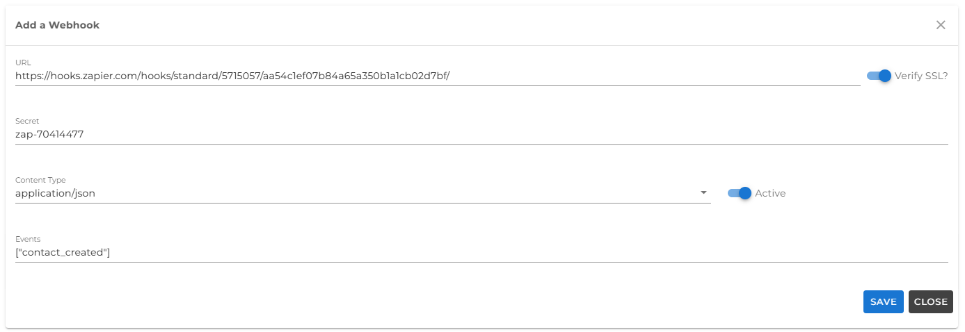Note: Events must be wrapped in square brackets and quotation marks. We are in the process of adding more event status options. However, for now, the status can be queried using the Quotes API.