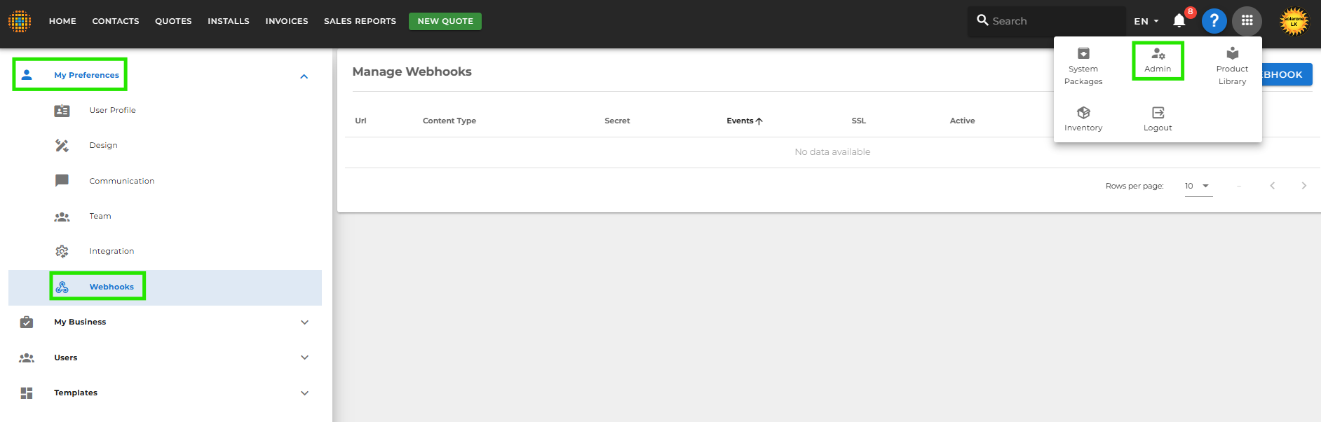 Web hooks enable you to trigger actions in external applications when a quote in SolarPlus:
