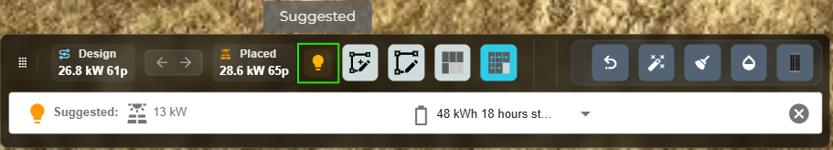 Group B - Contains a single icon representing the suggested system based on your consumption and battery hours stored. Click the icon to view or hide the suggested system.