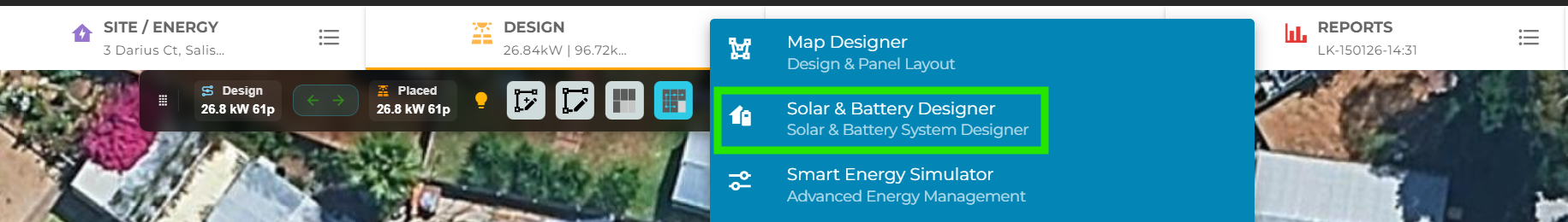 The old System Designer (which directed you to the Solar & Battery Design page) has been retired. To access the Solar & Battery Design page for adding battery systems or editing other key design parameters, hover over the More Options icon in the Designer Header section.