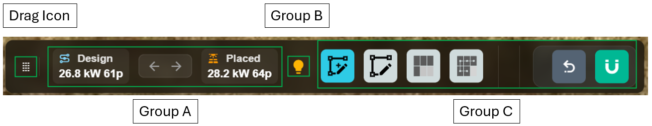 Group A - Displays information about System Design and the panels placed on each surface. It also includes the new Panel Layout ↔ Design Sync feature, which lets you sync your layout/design from Panel Layout to System Design (and vice versa). For more information, see the Map Design Sync Feature.