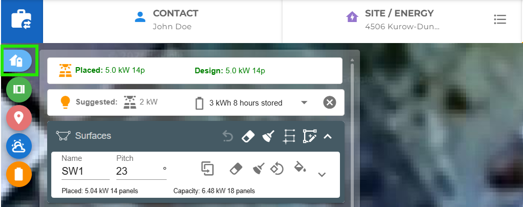 Draw Surface - Lets you create roof surfaces where panels can be added. This mode includes two dynamic tools:
