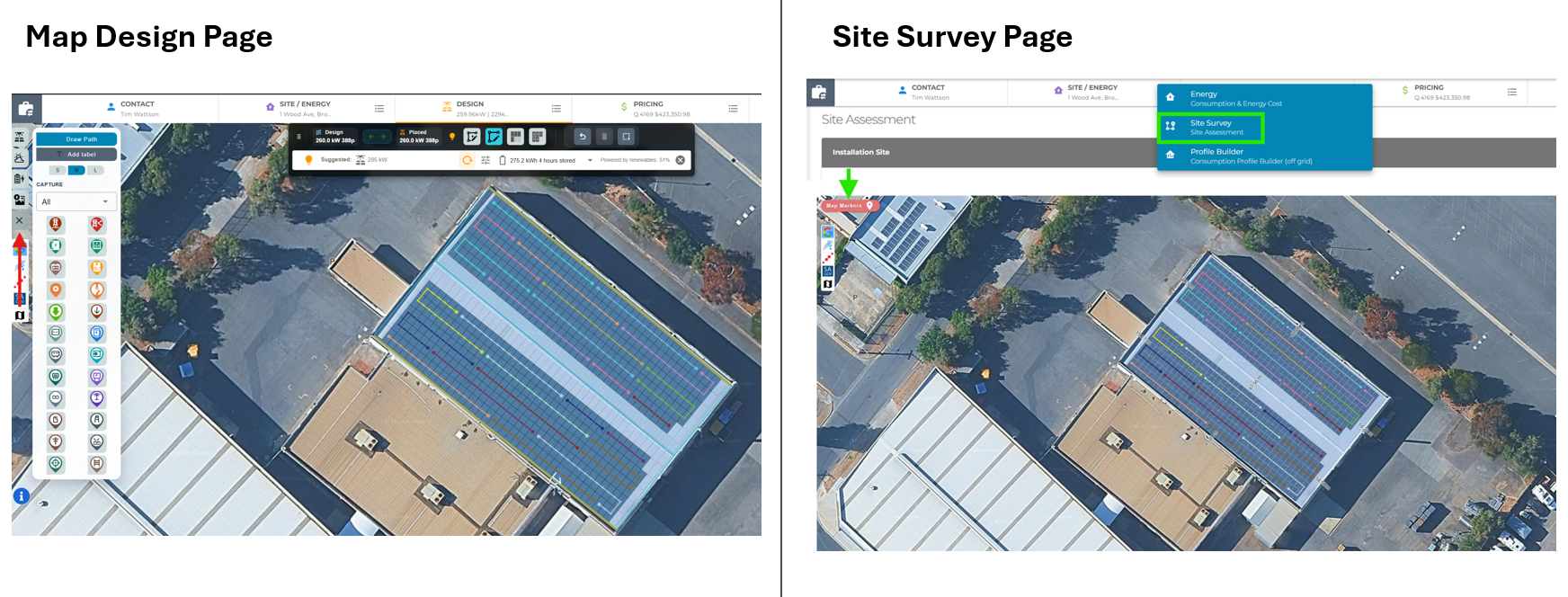 You can add Map Markers via the Map Design page or the Site Survey page. For a faster and more reliable experience, SolarPlus recommends using the Site Survey page.